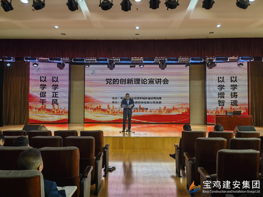 為認(rèn)真學(xué)習(xí)貫徹習(xí)近平新時代中國特色社會主義思想和黨的二十大精神,扎實深入推進(jìn)主題教育。11月28日下午,在寶雞建安集團(tuán)股份有限公司24樓多功能廳舉辦了一場“學(xué)習(xí)貫徹講話精神、著力推動高質(zhì)量發(fā)展”黨的創(chuàng)新理論宣講會。本次宣講會由中共寶雞市住房和城鄉(xiāng)建設(shè)局黨組主辦,寶雞建安集團(tuán)股份有限公司黨委承辦,局機(jī)關(guān)和局屬27個企事業(yè)單位200多名黨員干部參加了宣講會。 寶雞建安集團(tuán)公司黨委副書記胥永寧在致詞中,感謝局黨組對寶雞建安集團(tuán)公司的信任和大力支持,介紹了公司經(jīng)營生產(chǎn)情況和黨建工作開展情況,并邀請局系統(tǒng)各兄弟單位蒞臨指導(dǎo),加強學(xué)習(xí)交流,共同拓展工作思路,促進(jìn)各項工作更上一層樓。