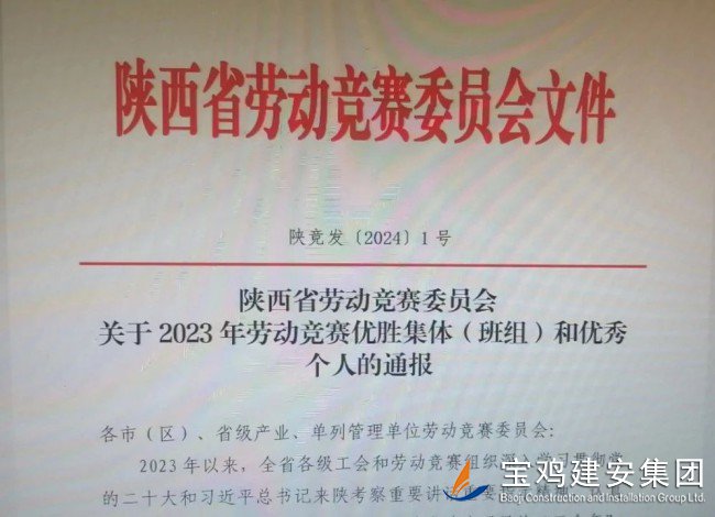 近日,陜西省勞動(dòng)競(jìng)賽委員會(huì)發(fā)出通知,在全省范圍內(nèi)通報(bào)嘉獎(jiǎng)獲得2023年度陜西省勞動(dòng)競(jìng)賽工作的先進(jìn)集體和優(yōu)秀個(gè)人,集團(tuán)公司工會(huì)上報(bào)、省市兩級(jí)工會(huì)聯(lián)合推薦的公司十一分公司南關(guān)路城市綜合體項(xiàng)目部榜上有名,獲得優(yōu)勝班組殊榮。