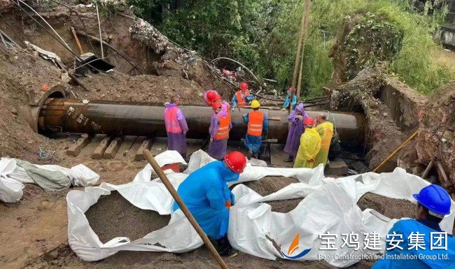 筑牢一線戰(zhàn)斗堡壘。“一個團(tuán)隊(duì)就是一座戰(zhàn)斗堡壘、一名搶險者就是一面旗幟”?,F(xiàn)場情況極端復(fù)雜,雨水管道直徑1.6米,爆管距離9.32米,水流湍急,形勢險峻。經(jīng)我單位同市政公司反復(fù)溝通,最終確定了較為科學(xué)的搶修方案:在水泥管中間穿12米長鋼管,采用中間焊接兩端包口的方式進(jìn)行連接…… 項(xiàng)目的難點(diǎn)在于工作面需要挖填及支護(hù)土方2000余方,12米長5.2噸重鋼管穿于固定水泥管9.3米斷口內(nèi),帶水連接。從7月27日下午5點(diǎn),到7月28日下午7點(diǎn),幾乎是晝夜兼行,持續(xù)工作26小時后,大家這才長長吁了一口氣。 終于可以給上級部門一個滿意的回復(fù)了; 終于可以給廣大受災(zāi)的群眾居民一個圓滿的答復(fù)了; 終于及時完成了此次搶修任務(wù),可以踏踏實(shí)實(shí)睡一個安穩(wěn)覺了……